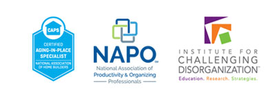 Nadine’s graphic arts education in Philadelphia laid the groundwork for her design career, which spanned over twenty‐five years. She began practicing as a senior interior designer in 1990, was a long-time Allied Member of ASID (American Society of Interior Designers), a Certified Aging in Place Specialist (CAPS) and a CPO‐CD®. She is a past Professional Member of NAPO (National Association of Professional Organizers).